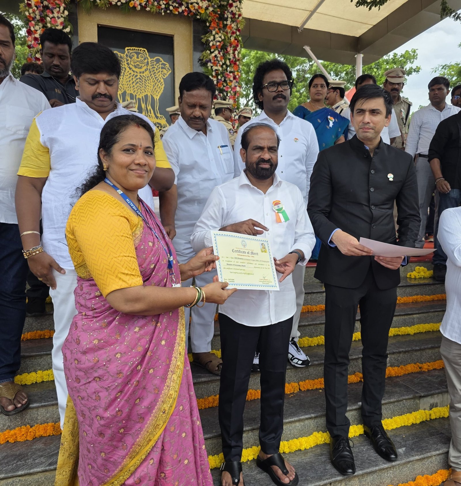 చిత్తూరు జిల్లా బంగారుపాళ్యం మండలం ప్రభుత్వ ఆసుపత్రి ప్రధాన వైద్యాధికారి డాక్టర్ శిరీష కు 79వ స్వాతంత్ర దినోత్సవ వేడుకల్లో భాగంగా, చిత్తూరు డిటిసి మైదానంలో జిల్లా ఎస్పీ మణికంఠ చందోలు ఆధ్వర్యంలో వైద్య ఆరోగ్య శాఖ మంత్రి సత్య కుమార్ యాదవ్ చేతులమీదుగా, సేవా పథక అవార్డును అందుకున్నారు. కార్యక్రమంలో జిల్లా కలెక్టర్ సుమిత్ కుమార్, స్థానిక శాసనసభ్యులు గురజాల జగన్మోహన్, జీడీ నెల్లూరు ఎమ్మెల్యే థామస్ వేదికలో పాల్గొన్నారు. తమ ప్రభుత్వ హాస్పిటల్ వైద్యాధికారి డాక్టర్ శిరీష కు సేవా పథక అవార్డు రావడంతో బంగారుపాలెం ప్రభుత్వ హాస్పిటల్స్ సిబ్బంది మంగళవారం శాలువాలు కప్పి పూలమాలలు వేసి ఘనంగా సత్కరించారు. కార్యక్రమంలో డాక్టర్ శిరీష మాట్లాడుతూ, వైద్య సేవల పట్ల ప్రభుత్వం తనను గుర్తించి సేవా పథక అవార్డును ఇవ్వడం పట్ల ఆమె హర్షం వ్యక్తం చేశారు. కార్యక్రమంలో డాక్టర్ విజయ కుమారి, డాక్టర్ రాఘబావన, హాస్పటల్ సిబ్బంది, 104 – 108 సిబ్బంది, తదితరులు పాల్గొన్నారు